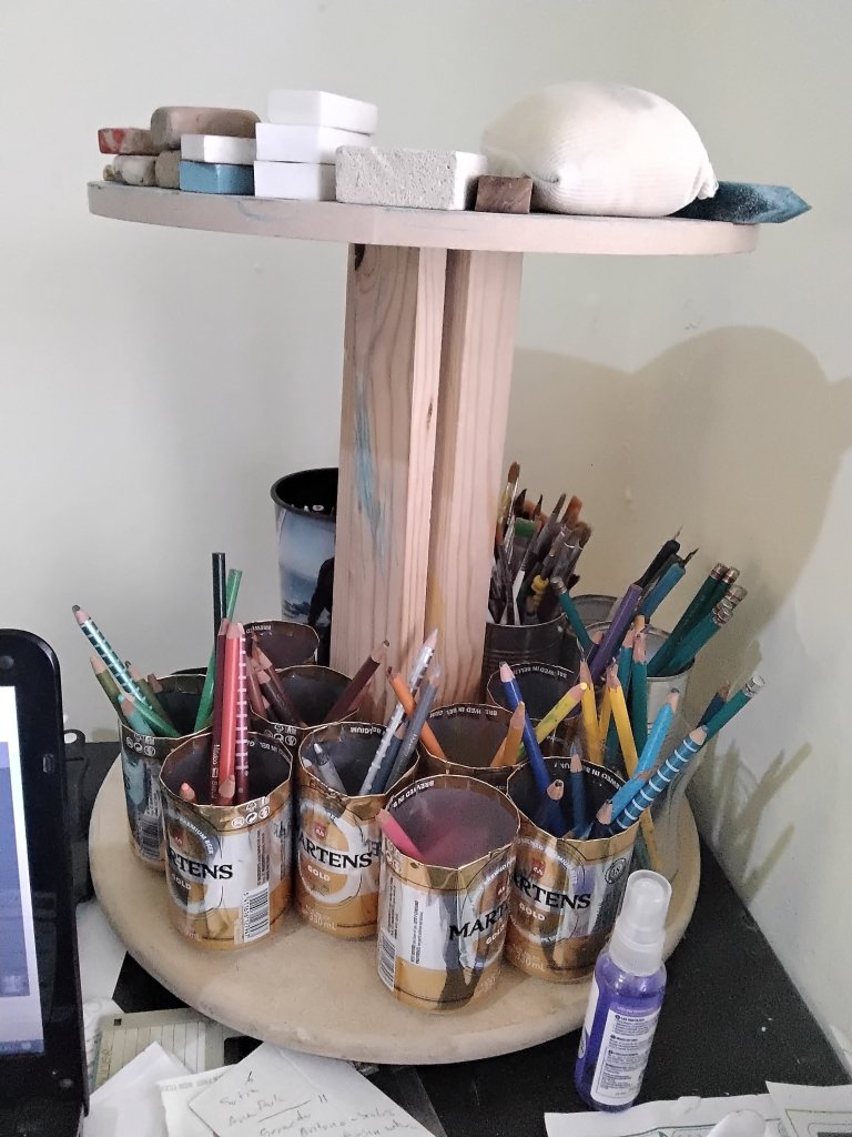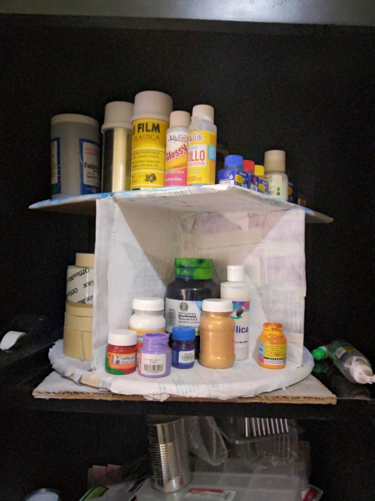 Yet, the arts supplies have been tricky. And even if I’m not a super organized person, I need everythig to be in the right container in the right place. And as declutered as possible. Up til this day, I’ve found that a regular closet and a modified lazy susan do marvels saving space yet having all at hand.